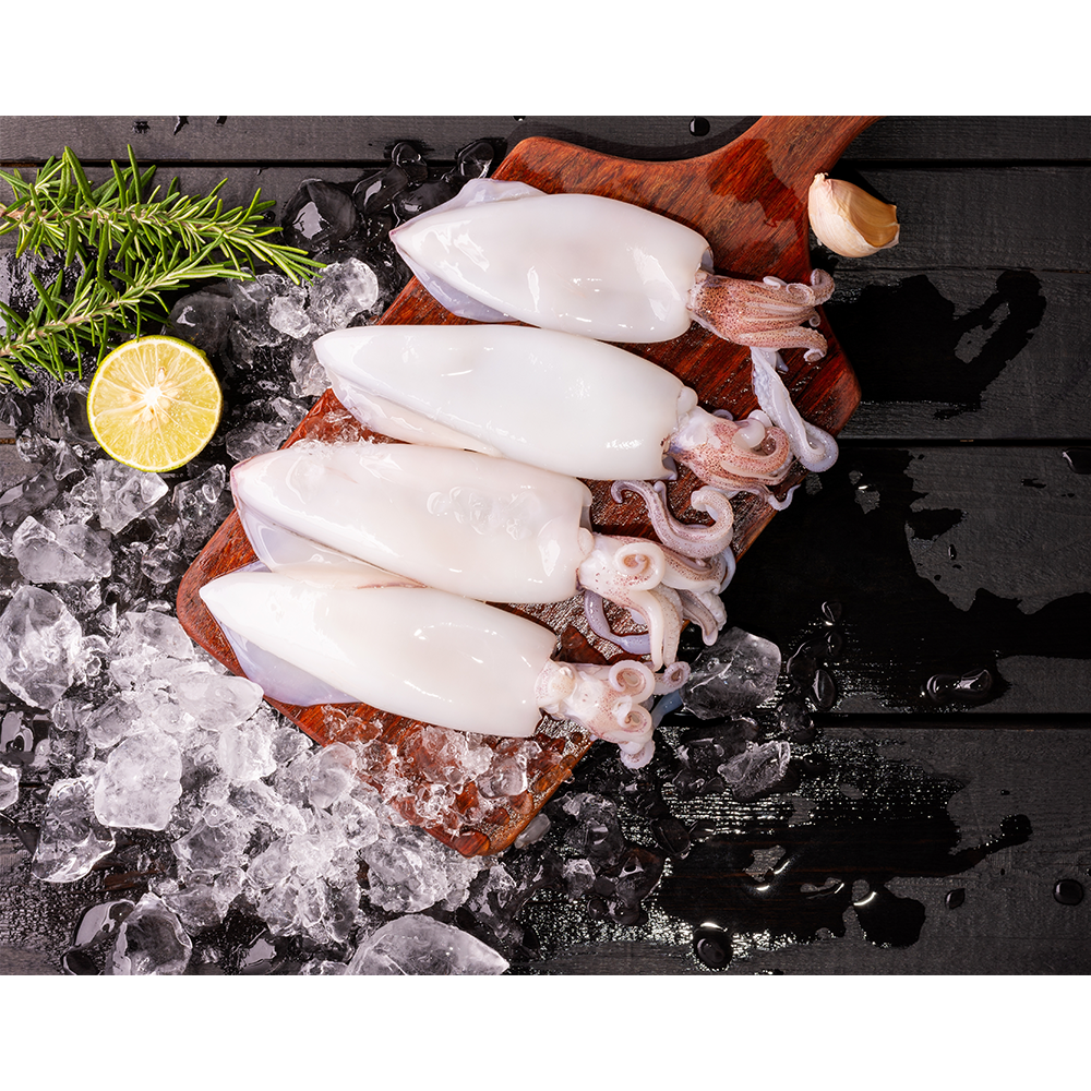 Red Mermaid SeafoodProduct Description: Whole Cleaned Squid (Loligo spp.) Whole Cleaned Squid, scientifically known as Loligo, is a premium seafood product carefully selected, cleaned, and prepared to ensure maximum freshness and convenience. Known for its mild, slightly sweet flavor and firm yet tender texture, it is widely used in global cuisines. Each squid is thoroughly cleaned while maintaining its whole form, making it ready for direct cooking. Hygienically processed and quick frozen, it preserves its natural taste, texture, and nutritional value, ensuring consistent quality for both retail and food service markets. Key Features: Whole squid, fully cleaned and ready to cook Mild, sweet flavor with firm, tender texture Quick frozen to preserve freshness and quality Hygienically processed, export-grade standard Ideal for grilling, frying, stuffing, and stir-fry dishes
